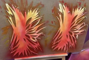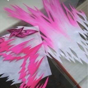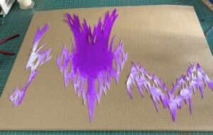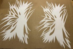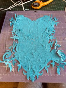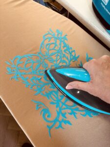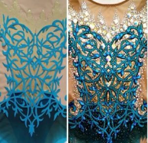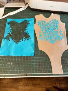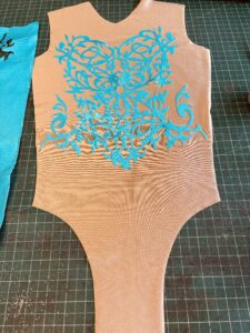 I also iron onto the lycra.. bondaweb before I start as it gives structure to the lycra when cutting, it also allows you to iron your design directly onto your design when you have cut it. I still like to zig zag as well just because I haven’t tested the bondaweb for any length of time, obvs in the future I will change this blog to read my findings once I have tested it properly.