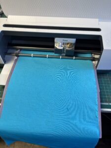 connect your computer to your maker or use bluetooth. upload your pattern, alter the size if you need to and then press make it. Select `lycra ( I select heavy denim and then I select more) as I have used the lycra one and it doesn’t always cut properly. when I select denim it works every time. Make sure you have the rotary cutter in the machine.