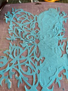 Cut out your lycra to the 30cm x 30cm square (this is the size of your mat. However I would purchase the 30cm x 60cm mat as some designs (especially mine need to be longer than 30cm in length). place the lycra on your mat and press go. once it is cut take your mat out and use the design.