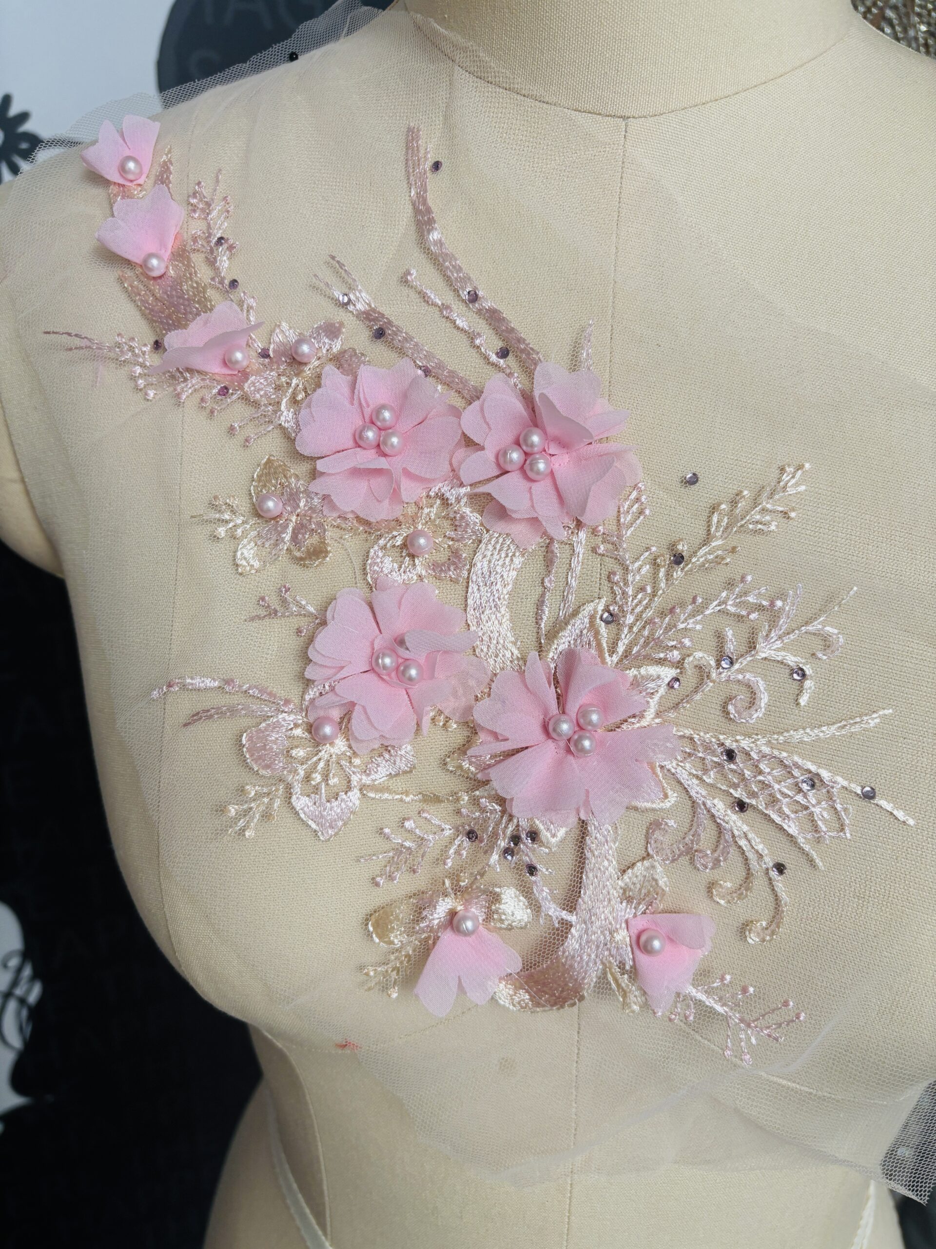 Sarah Applique floral pearl 12.5″ x 6″ baby pink