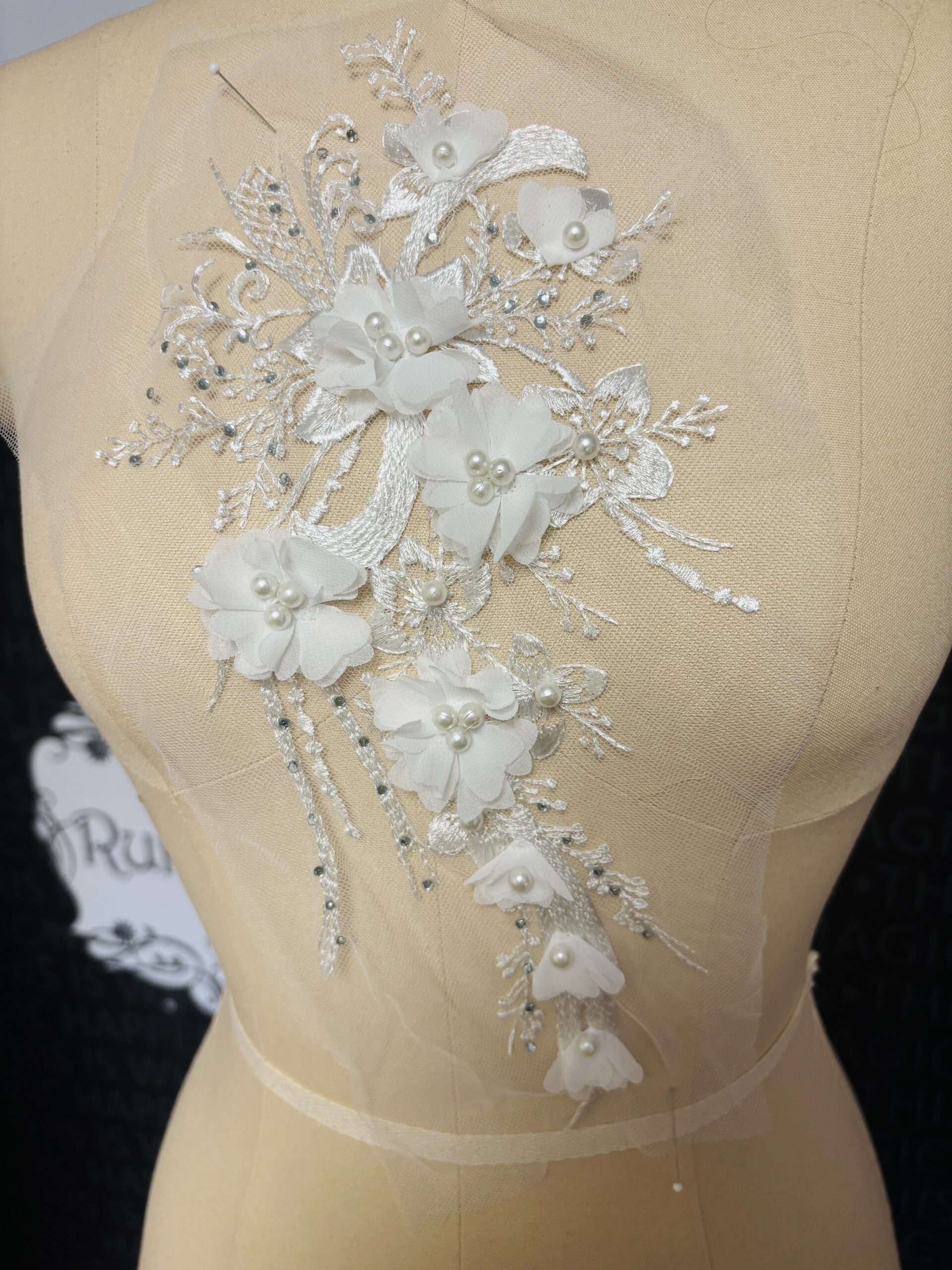 Sarah Applique floral pearl 12.5″ x 6″ White