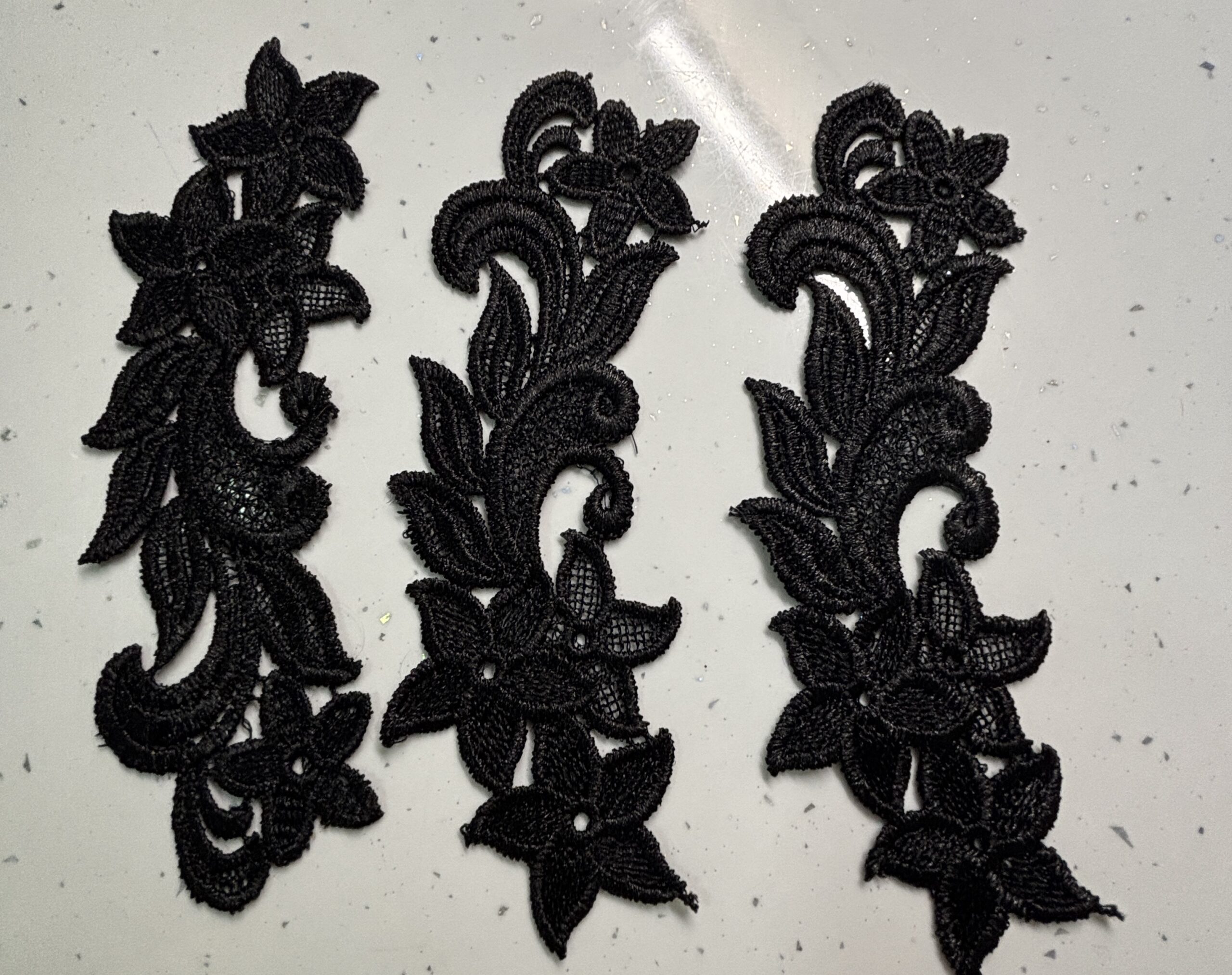 Home / Shop / Embellishment & Decorations / black guipure lace patch 7″ x 2″ sold as a single
