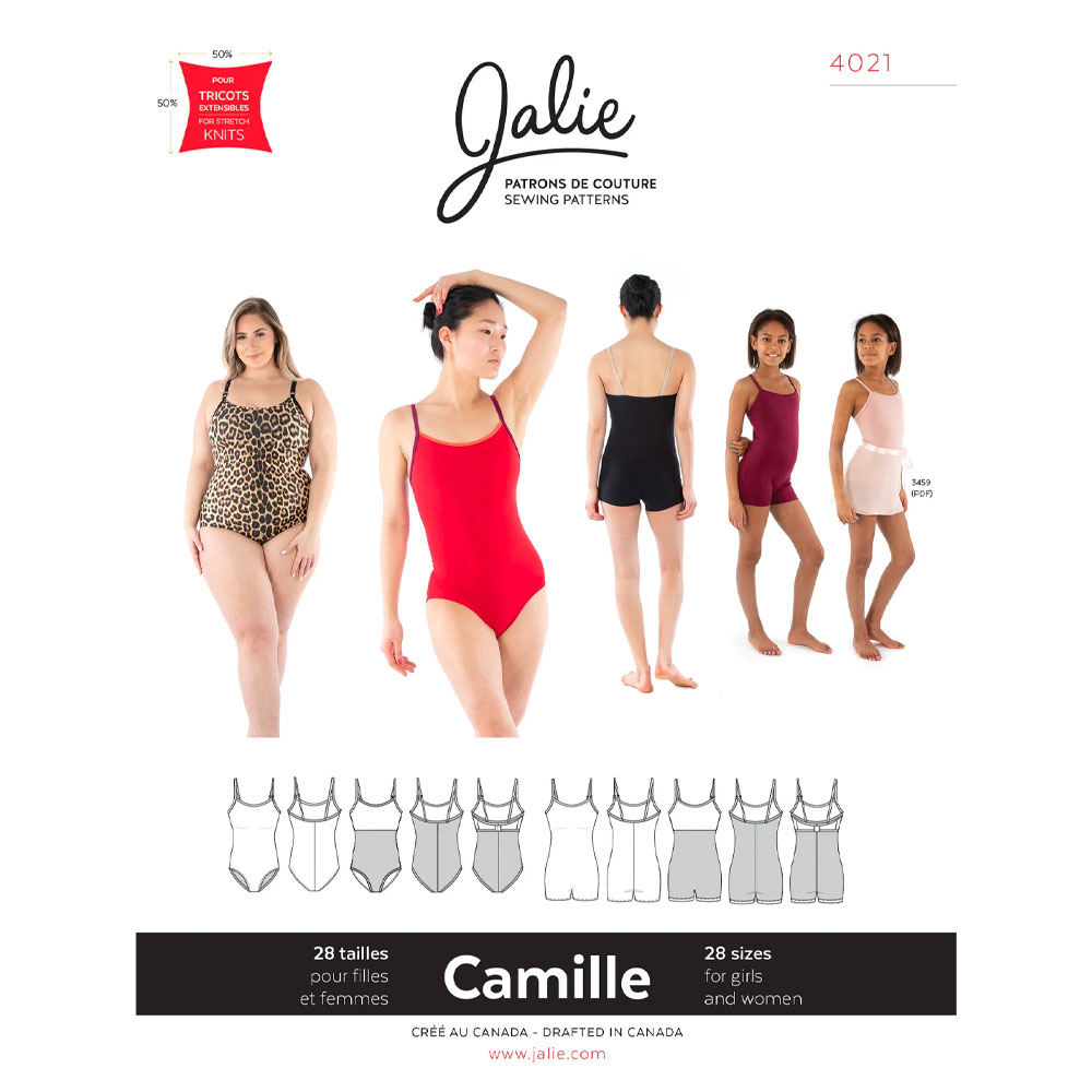 Cami leotard (A) and biketard (B). You can make the straps and finishing with self-fabric binding (pattern piece included) or use foldover elastic with adjustable bra straps.