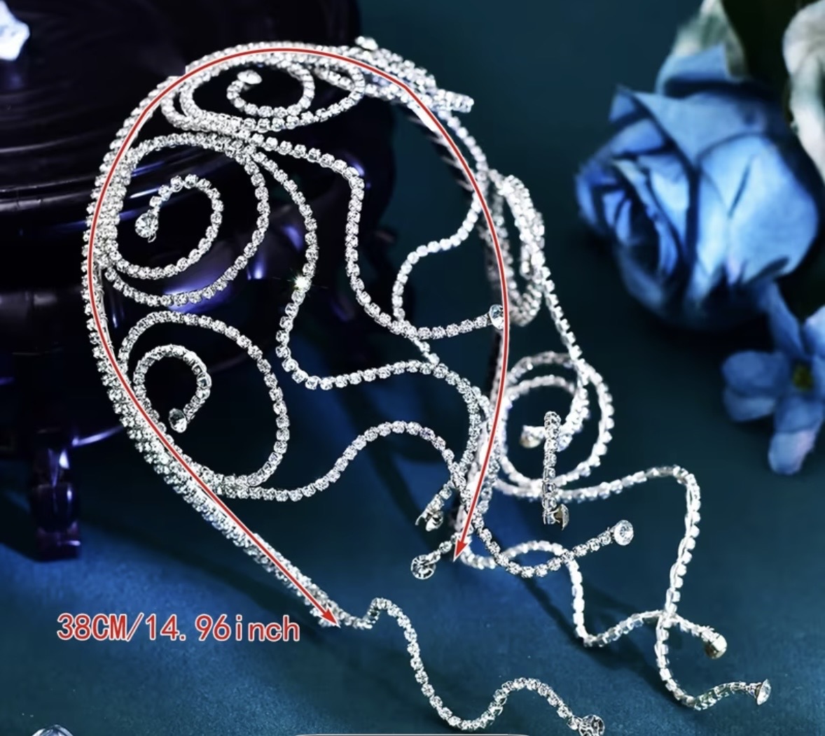 This is a show stopping hair piece, it can be worn in several ways ..the choice is yours, It can be used for dancers, performers, bridal … Clip into your hair using Kirby grips and if you are wanting it on your face use spirit gum or dancers adhesive. It is very light weight and flexible.