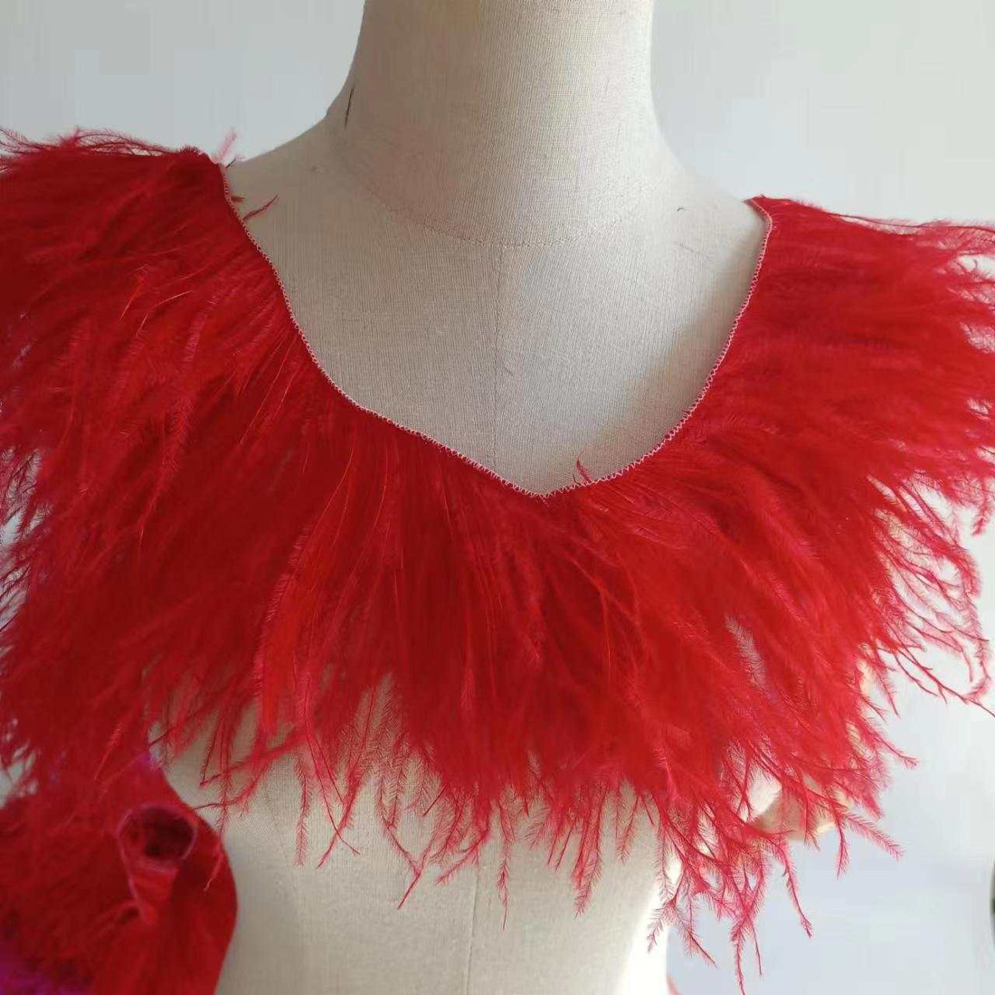 This Ostrich is beautiful quality and is sold by  1 meter, half meter or quarter meter.. It is often used on the edge of ball gowns, cuffs and necklines. It can also be used on dance costumes.