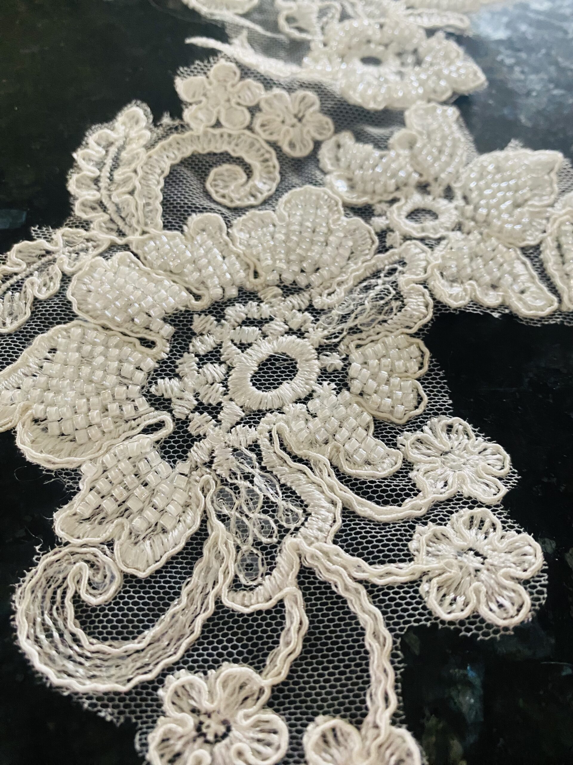 Sold as a single, elegant ivory beaded sew on patch 28cm x 16 cm