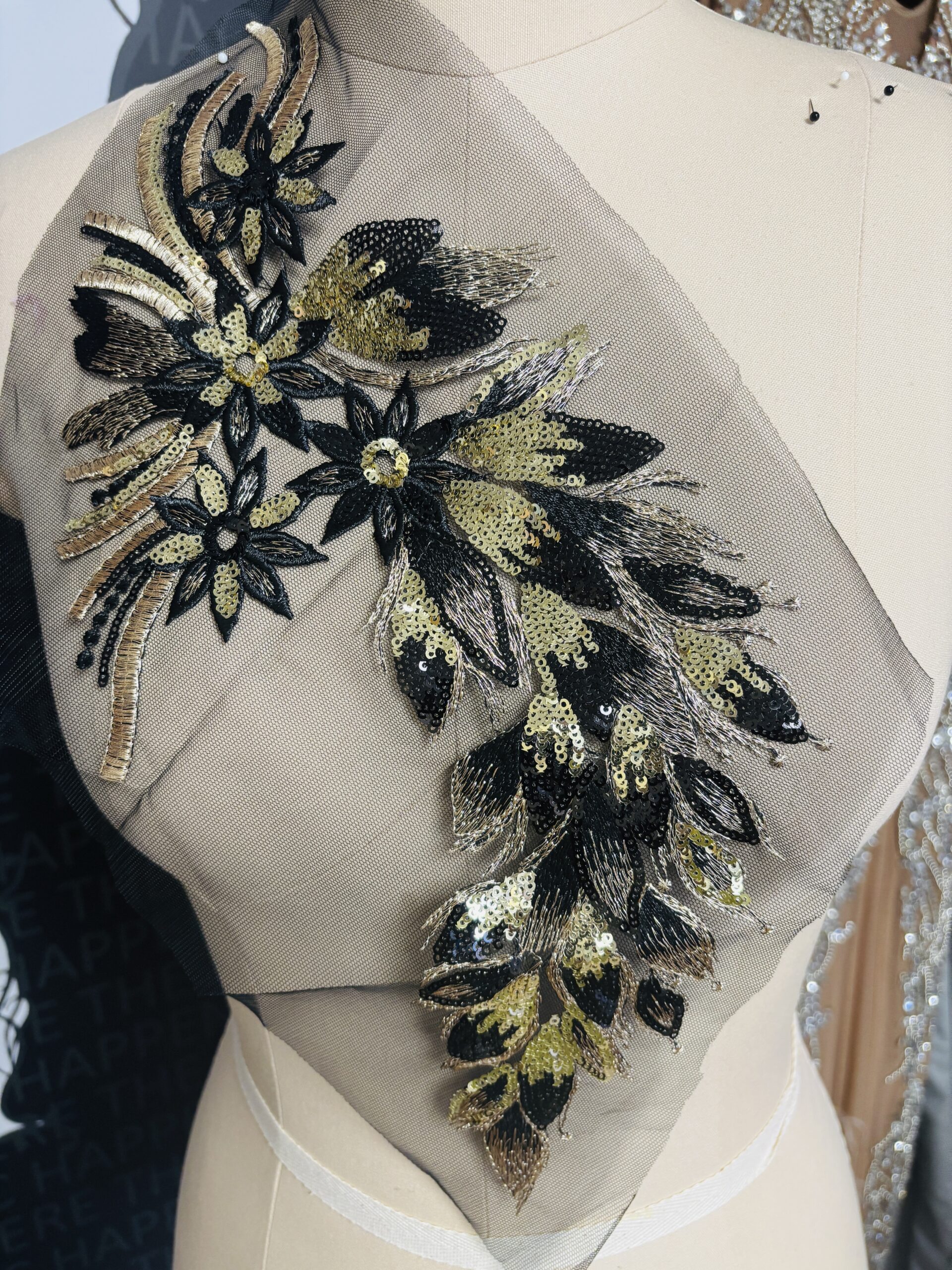 Jasmin Sequin Applique 16″ x 7.5″ black
