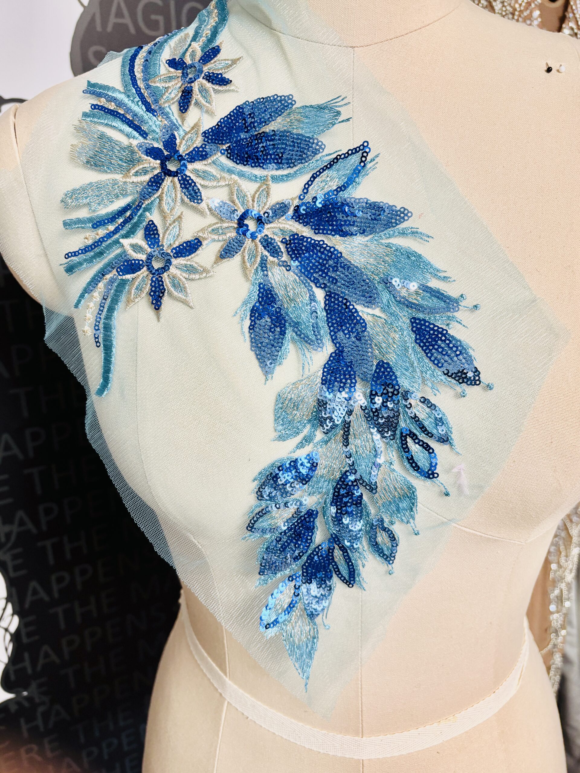 Home / Shop / Embellishment & Decorations / Jasmin Sequin Patch 16″ x 7.5″ light blue