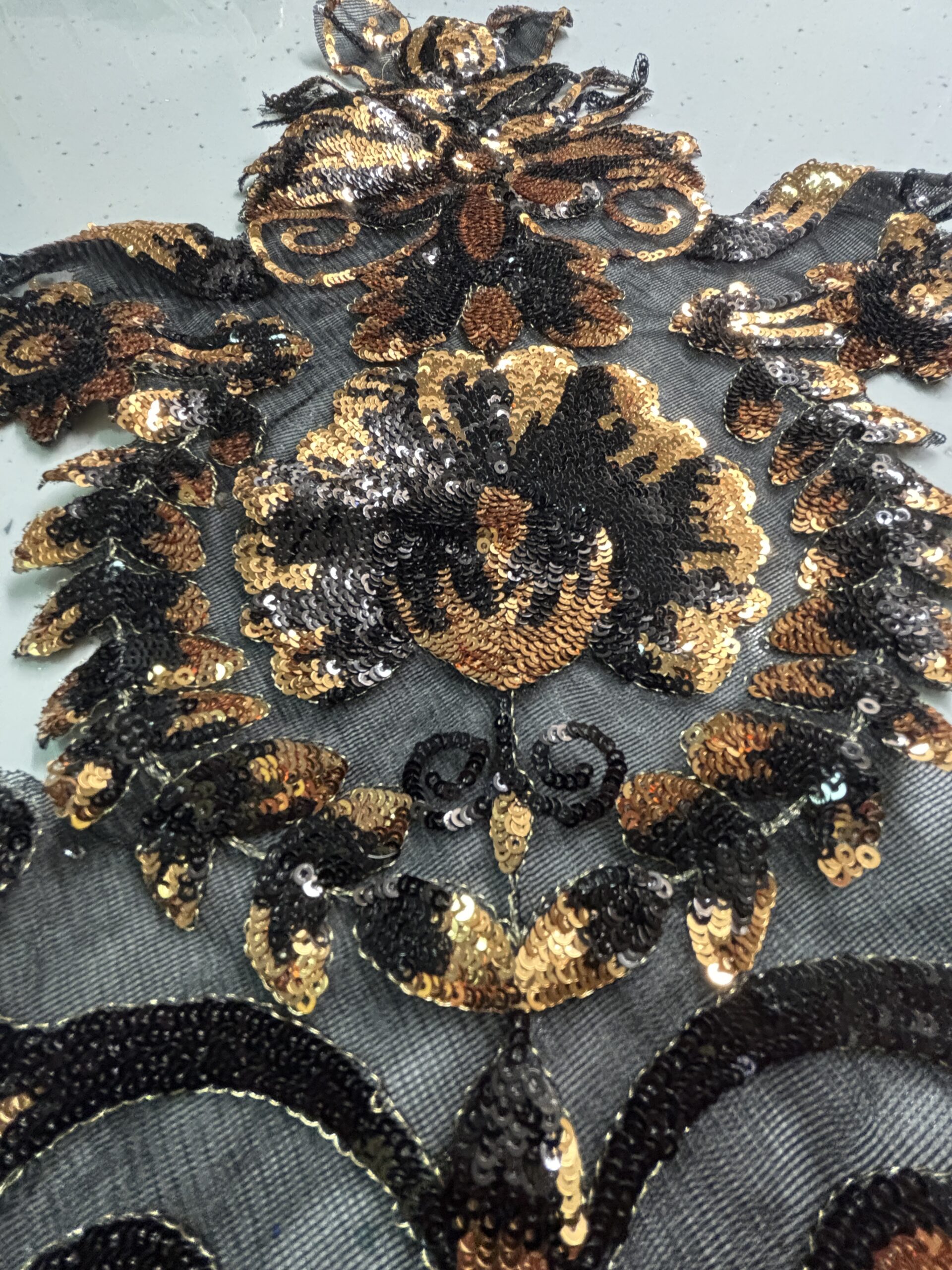 Large sequin back and gold applique patch – sew on _ or glue with fabric-fuse