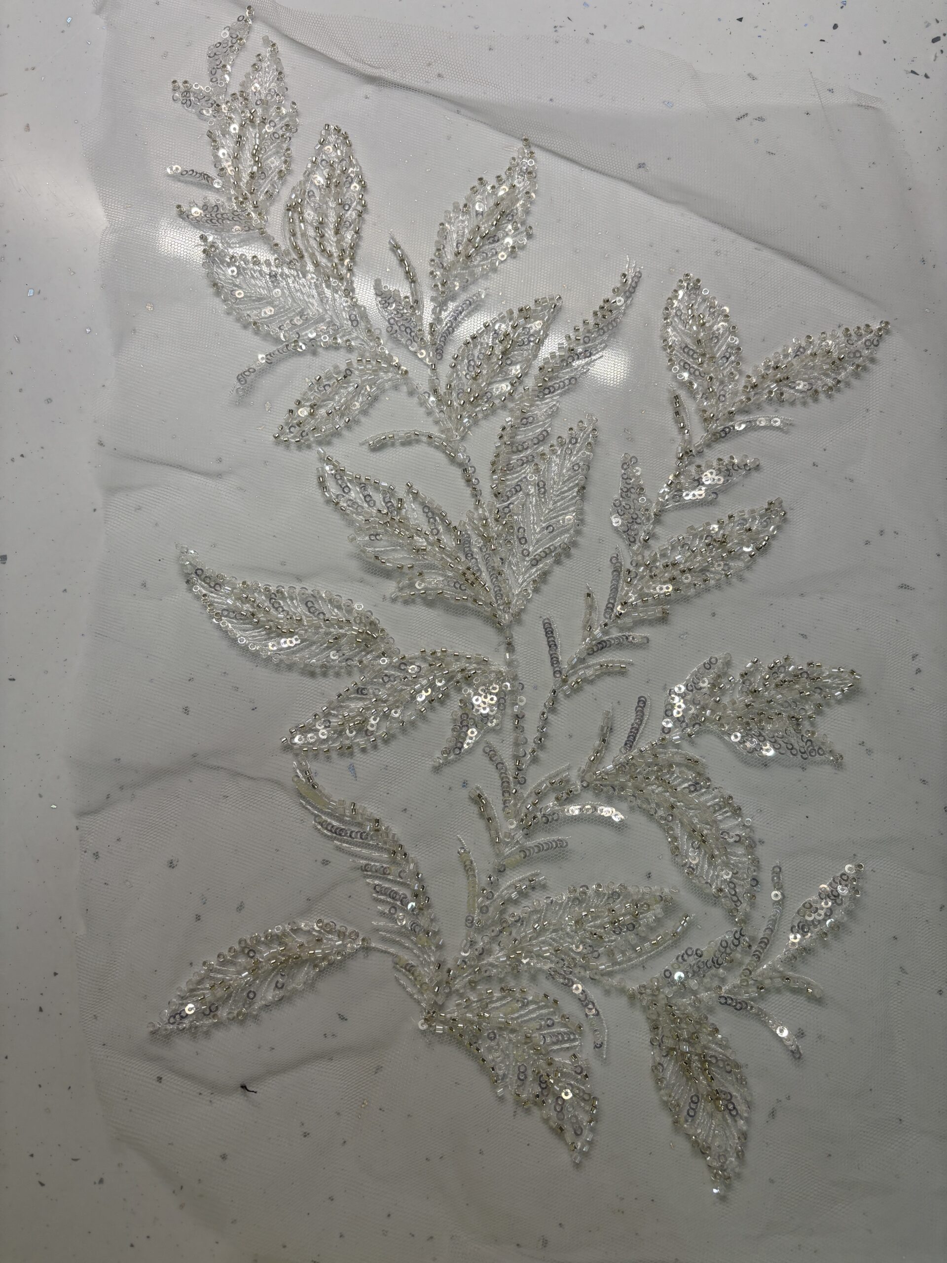 large sequin and bead patch ivory / silver