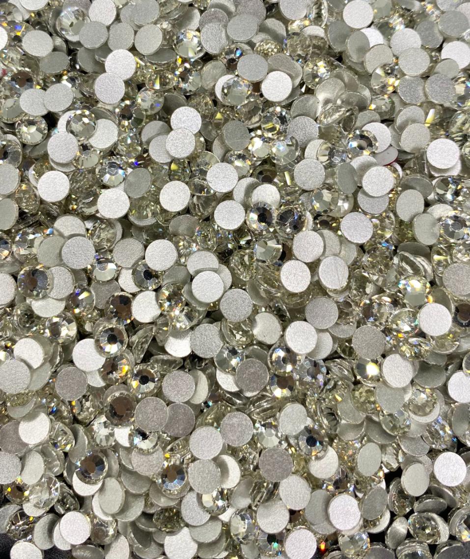 These non hotfix Crystals are Super Shiny Glass Crystals. They have been cut to give you maximum shine. Available in wholesale packs of 1440, 400 and 100. I recommend that you glue them on with either industrial based E6000 plus or Gem-tac.