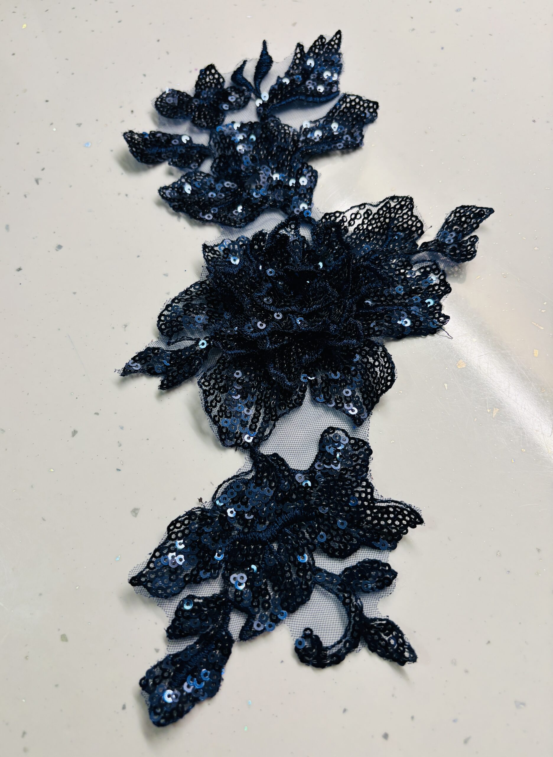 Home / Shop / Embellishment & Decorations / Navy Blue, 3D floral applique patch