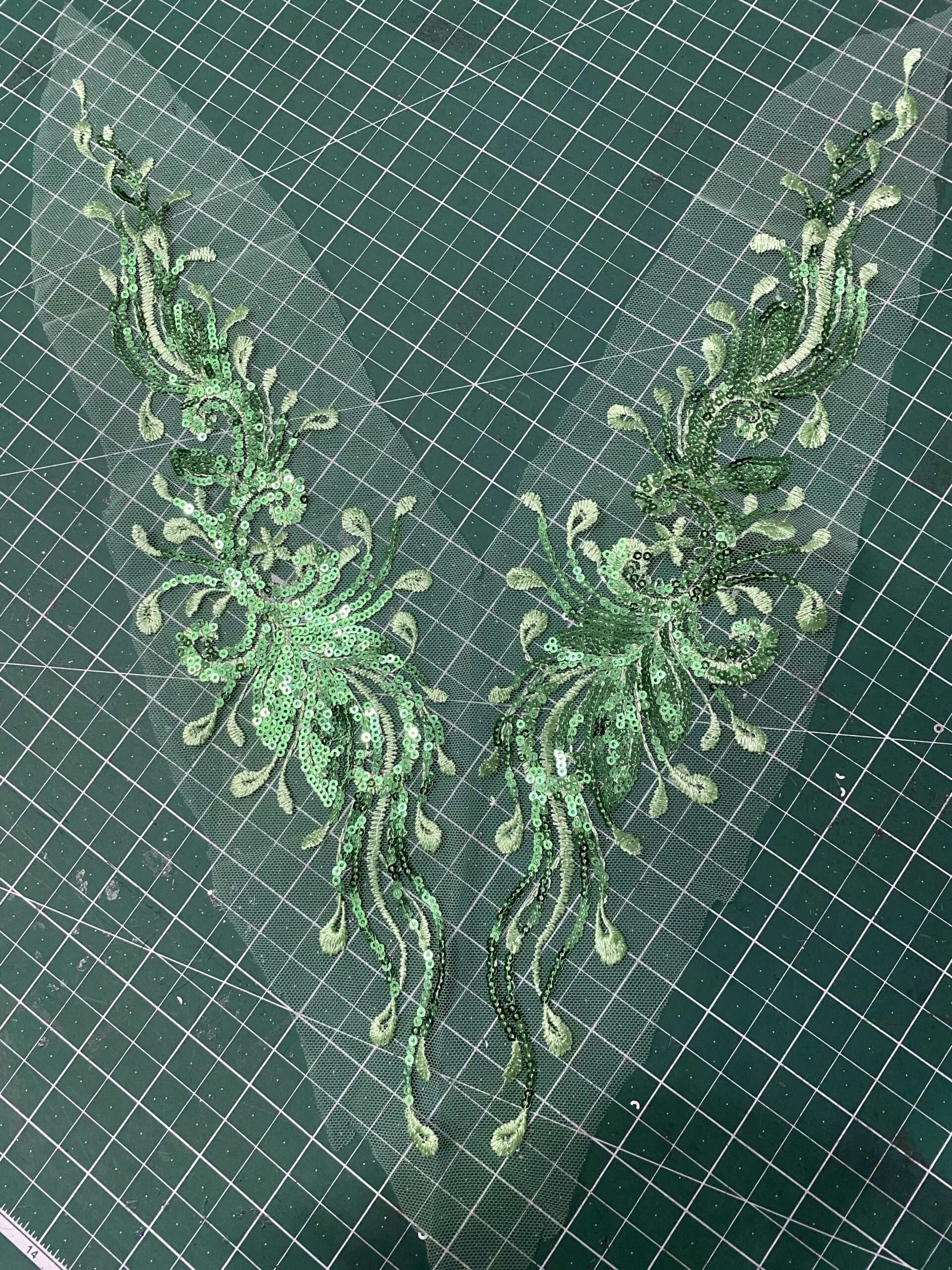 Home / Shop / Embellishment & Decorations / Appliques & Patches / Pair of Sequin Appliqué Patches (41cm x 10cm Each) – Light Green
