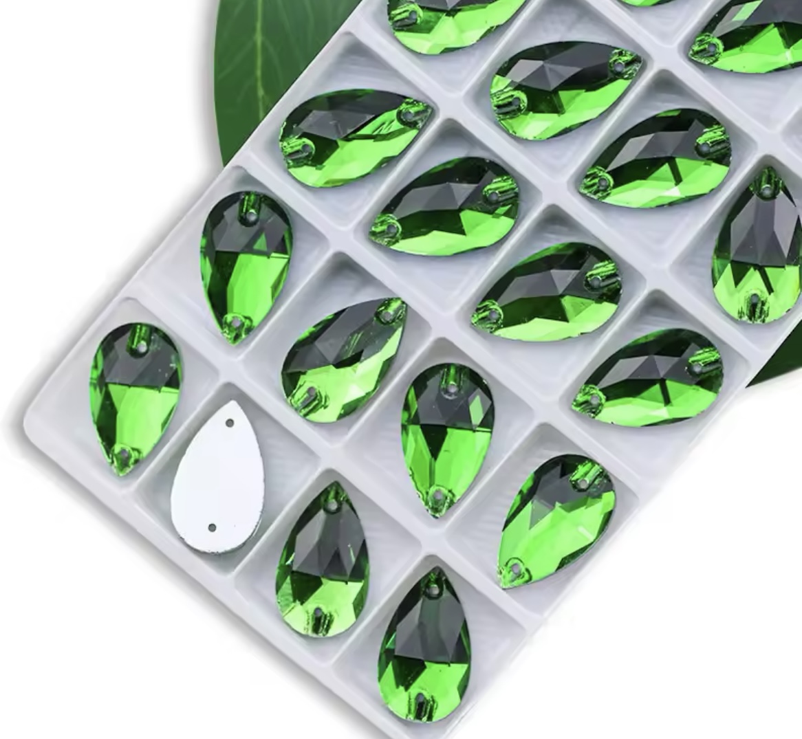 Home / Shop / Embellishment & Decorations / Rhinestones / Pear Drop Flat Backs Non-Hotfix 13 x 22mm Parrot green