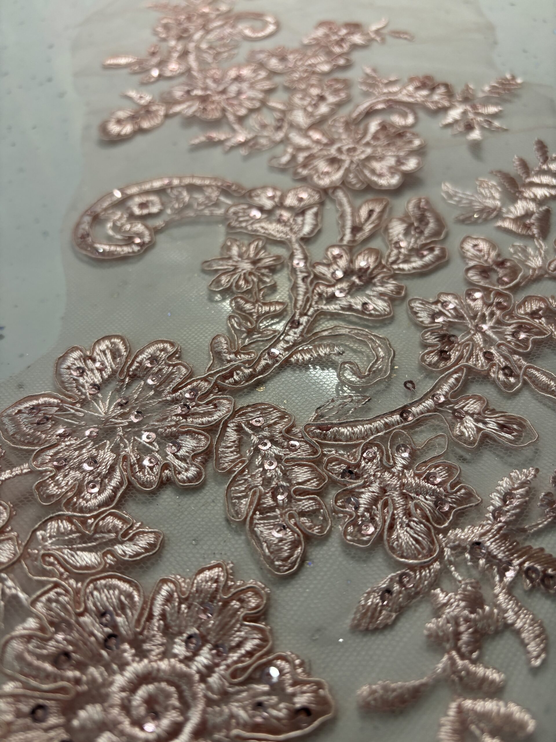 these are lovely sequin patches in baby pink. the 2 smaller patches measure 11″ x 6″ and the larger one measures 15>5″ x 8″, these can be glued on or sewed.