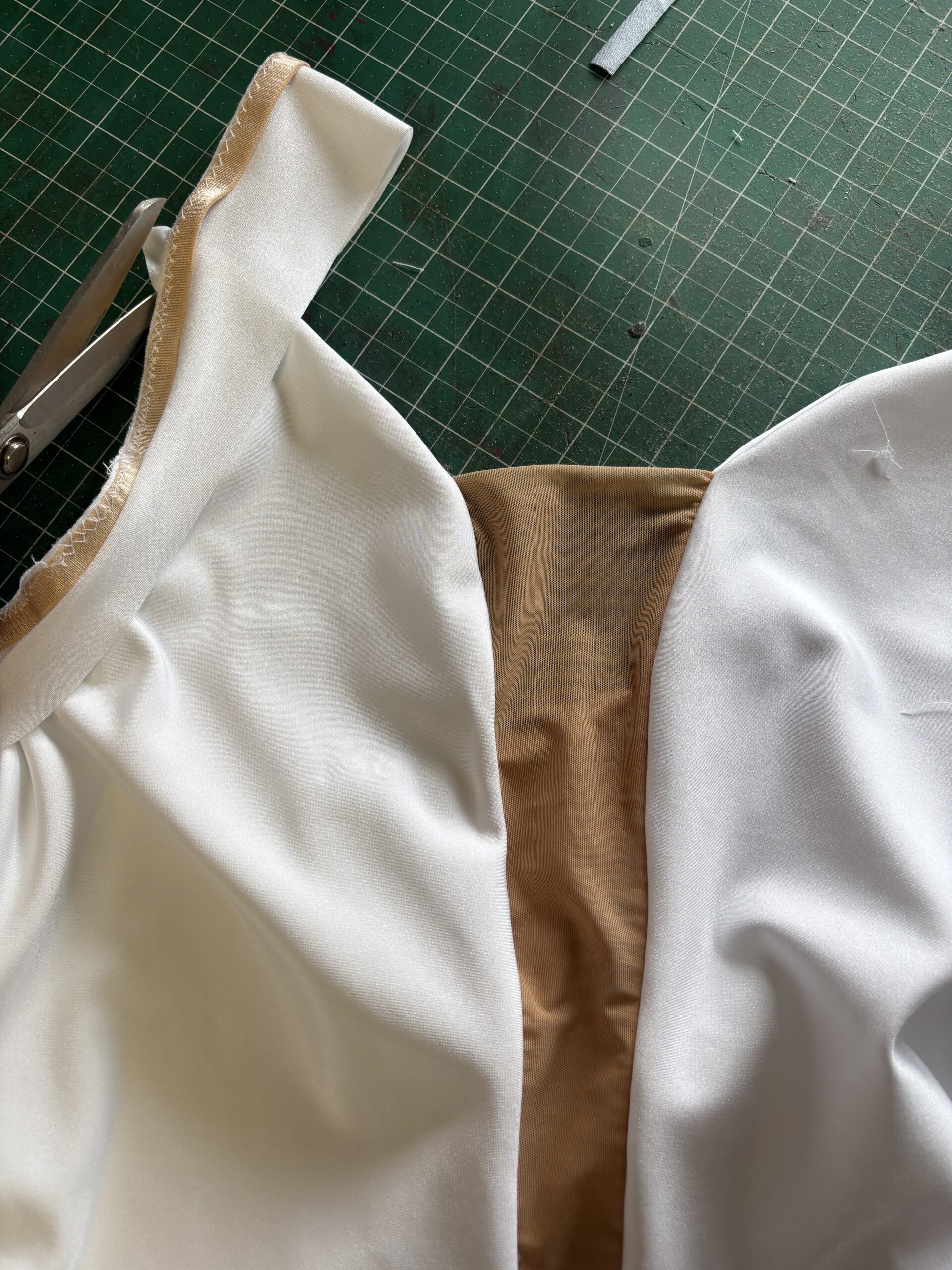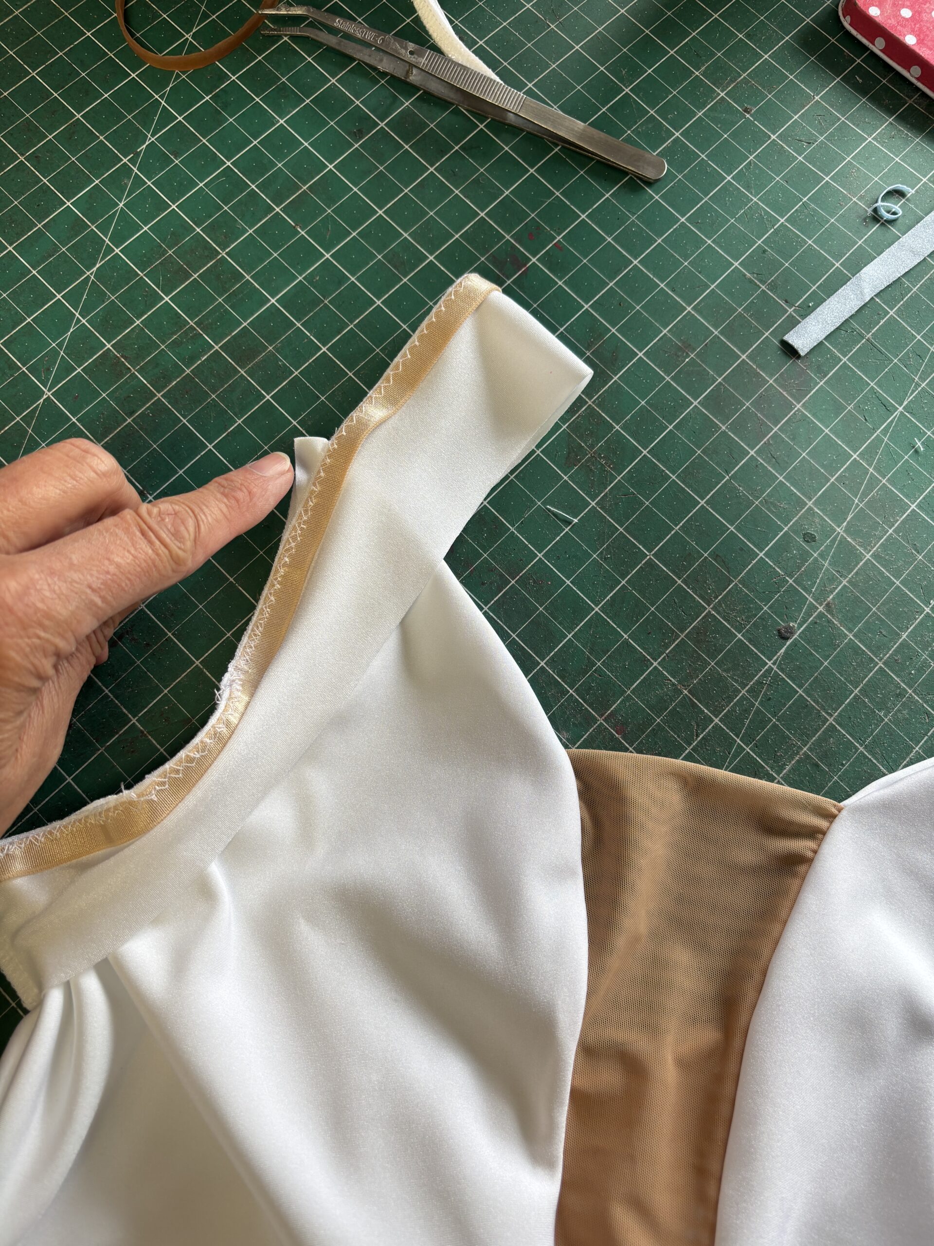 This pattern does not include a net guide, the net guide can be found in one of the instruction books that I sell, which include how to apply the net to the leotard.