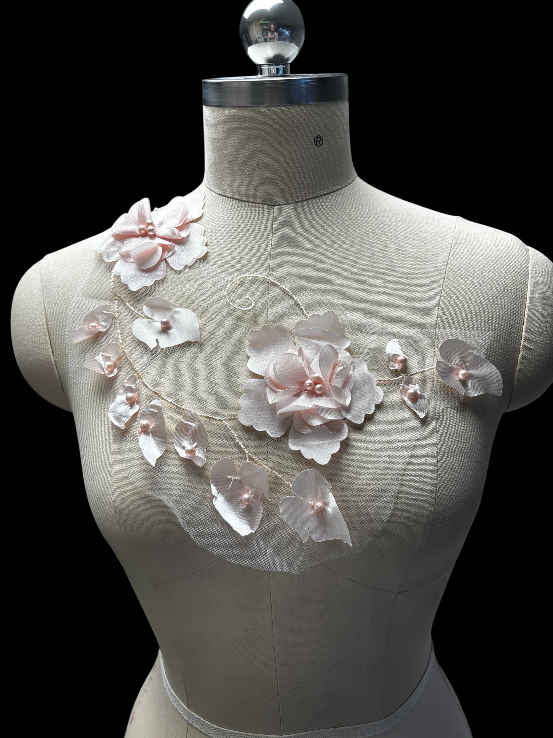 Beautiful delicate Peach shade, 3D organza, satin and gauze flowers and stems in various different sizes.Beautiful delicate Peach shade, 3D organza, satin and gauze flowers and stems in various different sizes.