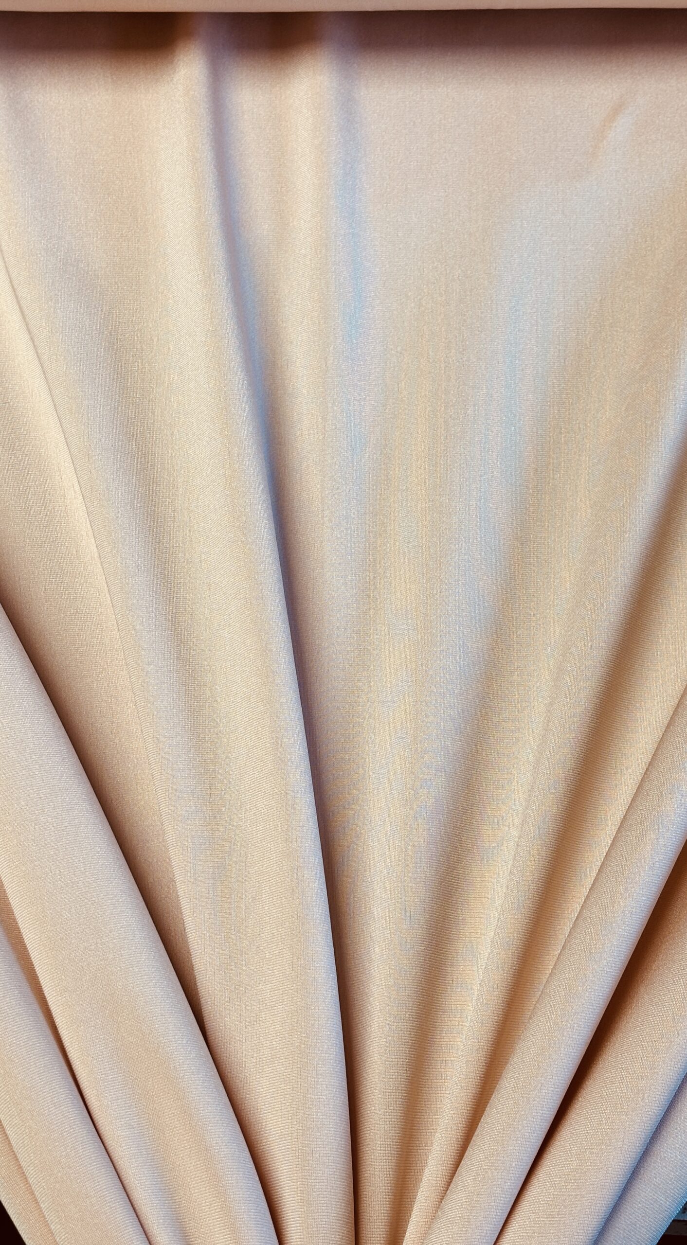 This is a 180gsm lycra, It can be used as a lining or doubled up for a costume. it’s silky to touch, the colour is champagne. 60″ wide, sold by the meter.