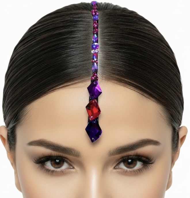 A sparkling rhinestone parting strip are sure to finish off your dance costume, they are ideal for dance competitions, showcases, performances. The Strips come in lots of colours. They can be applied to the scalp with Spirit Gum (not included). 16cm long