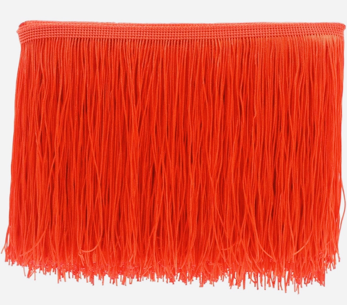 Beautiful Quality Flo Orange Fringing 30cm, this fringe can be trimmed to your desired length.